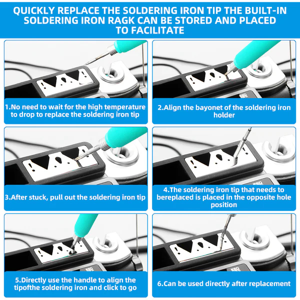 Οι περιστρεφόμενες βάσεις κολλητηριών προσφέρουν άνετη και εργονομική εμπειρία χρήσης, ενώ οι έξτρα μύτες συγκόλλησης και τα σφουγγάρια καθαρισμού μύτης κολλητηριού που συμπεριλαμβάνονται επιτρέπουν την απρόσκοπτη εκτέλεση των εργασιών σου με ακρίβεια και αξιοπιστία.