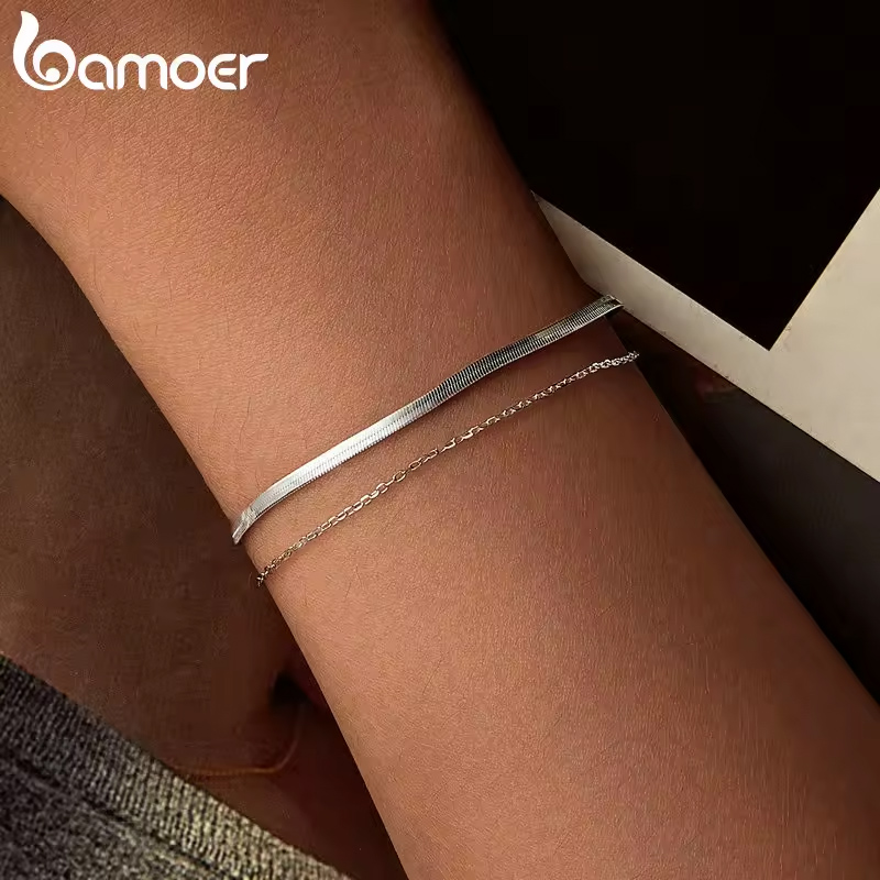 Μοντέρνο βραχιόλι Bamoer, κατασκευασμένο από ασήμι 925.