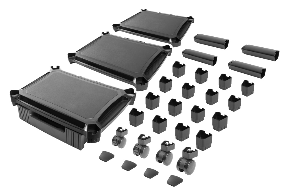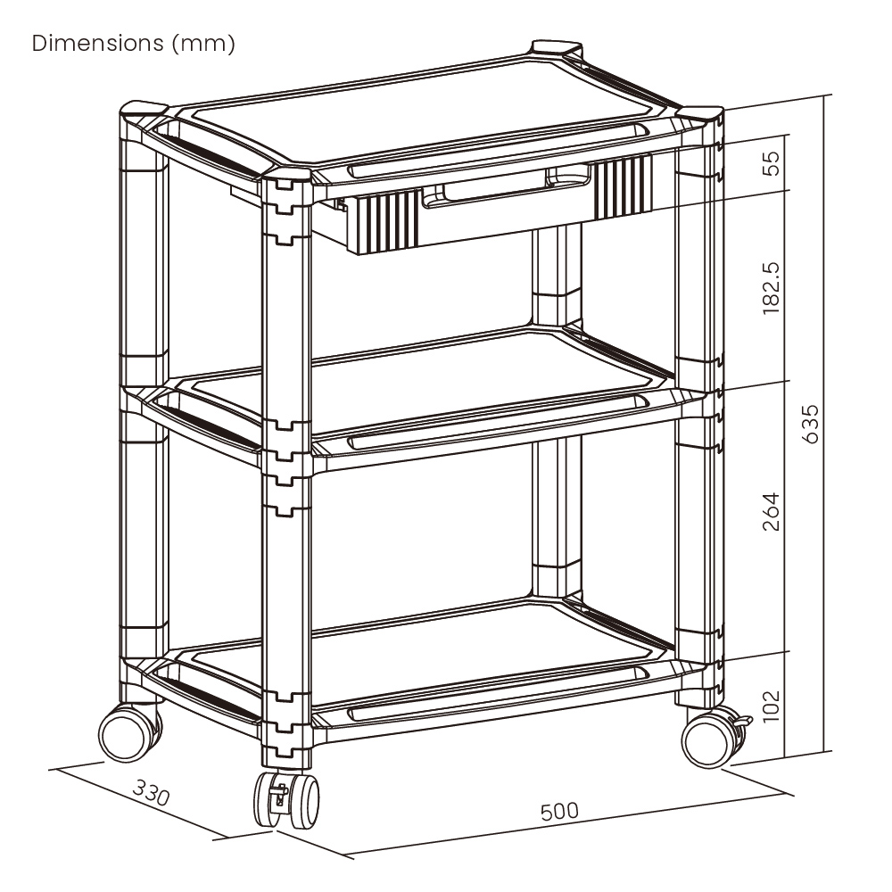 Διαθέτει ροδάκια με μηχανισμό κλειδώματος για την εύκολη μεταφορά της ραφιέρας.