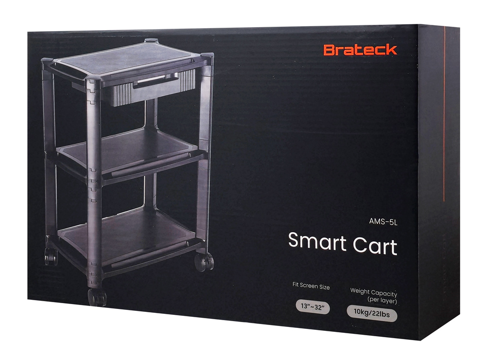 BRATECK ραφιέρα δαπέδου AMS-5L με ροδάκια, 3 ράφια, 50x33x63.5cm, έως 10kg, μαύρη