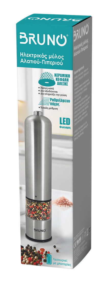 BRUNO ηλεκτρικός μύλος αλατιού-πιπεριού BRN-0272 με κεραμική κεφαλή, inox