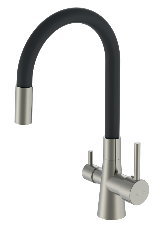 BRUNO μπαταρία πάγκου κουζίνας BRN-0239, τρίοδη, αναμεικτική, μαύρη/ασημί