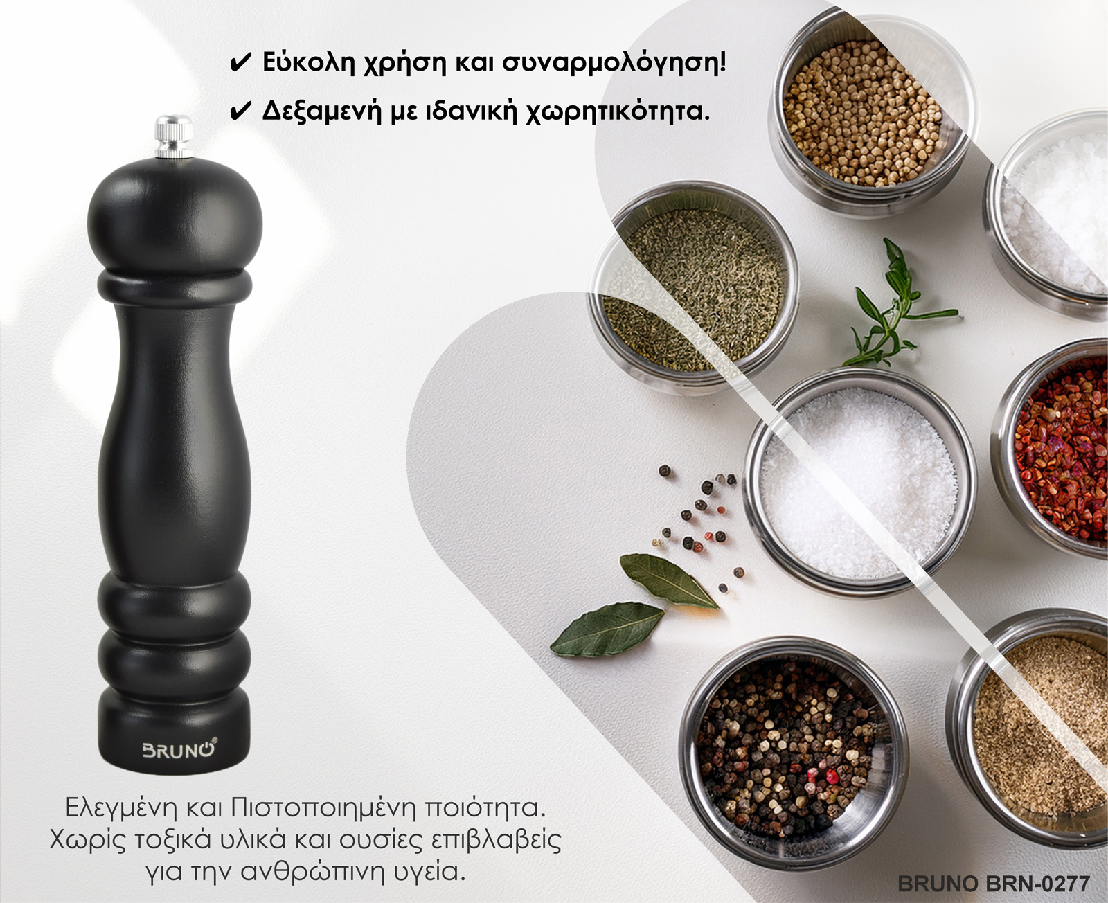 BRUNO μύλος αλατιού-πιπεριού BRN-0277 με κεραμική κεφαλή, μαύρος