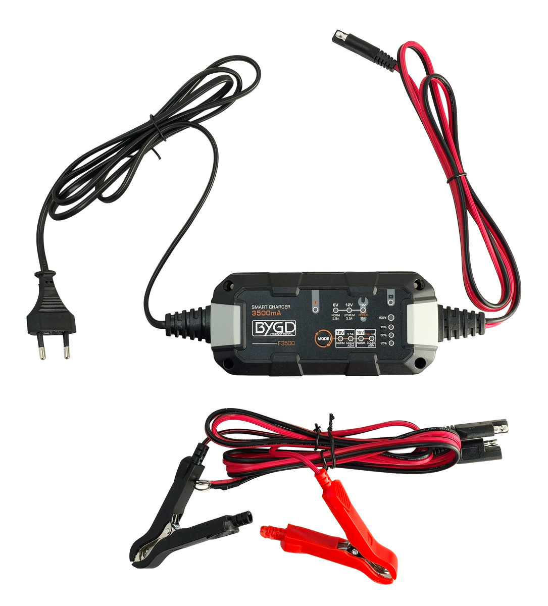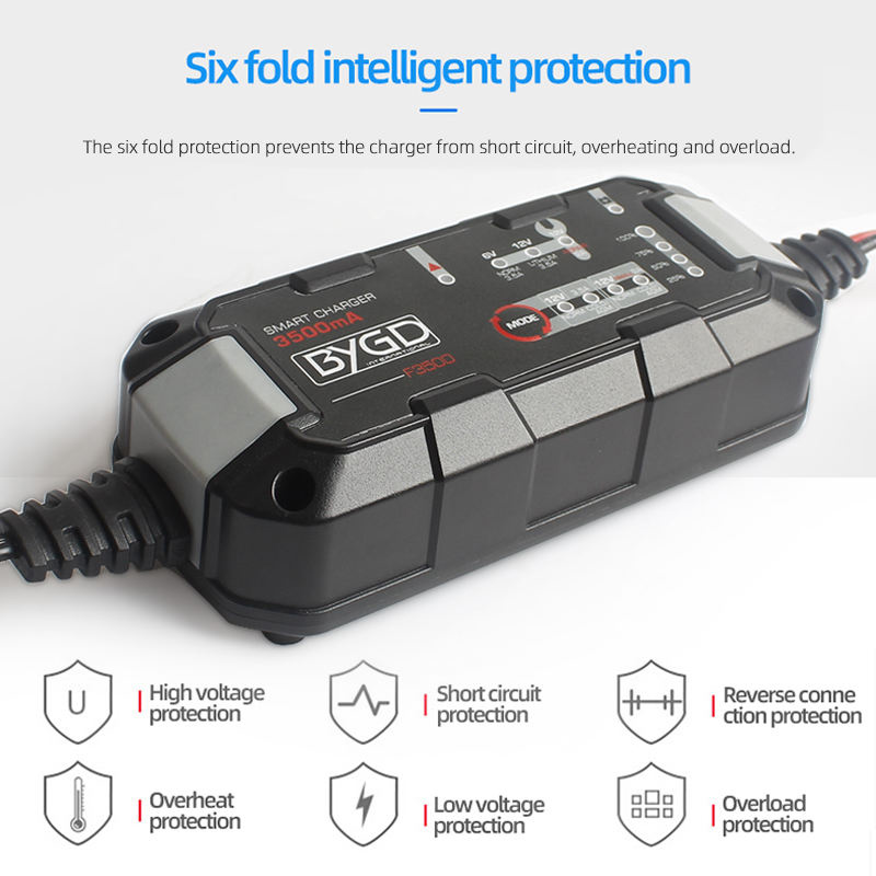 Ο BYGD F3500 είναι ένας αξιόπιστος και έξυπνος φορτιστής–συντηρητής μπαταρίας, ιδανικός για αυτοκίνητα, μοτοσυκλέτες και άλλα οχήματα με μπαταρίες 6V ή 12V.