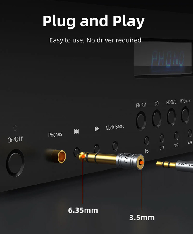 Αντάπτορας ήχου 6.3mm σε 3.5mm της Cabletime ιδανικός για τη σύνδεση υπολογιστών, smartphone, ακουστικών κ.α. με συστήματα ήχου όπως ηχεία, κιθάρες, κονσόλες ήχου κλπ.