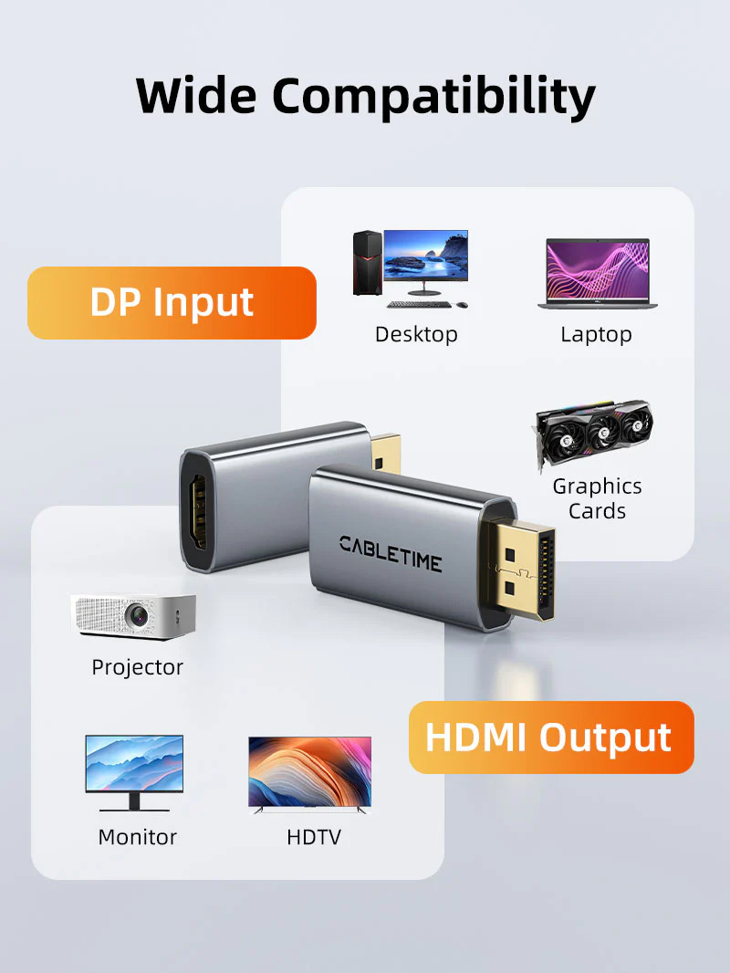 CABLETIME αντάπτορας DisplayPort σε HDMI CT-DMHF4K-AG6, 4K/60Hz, γκρι