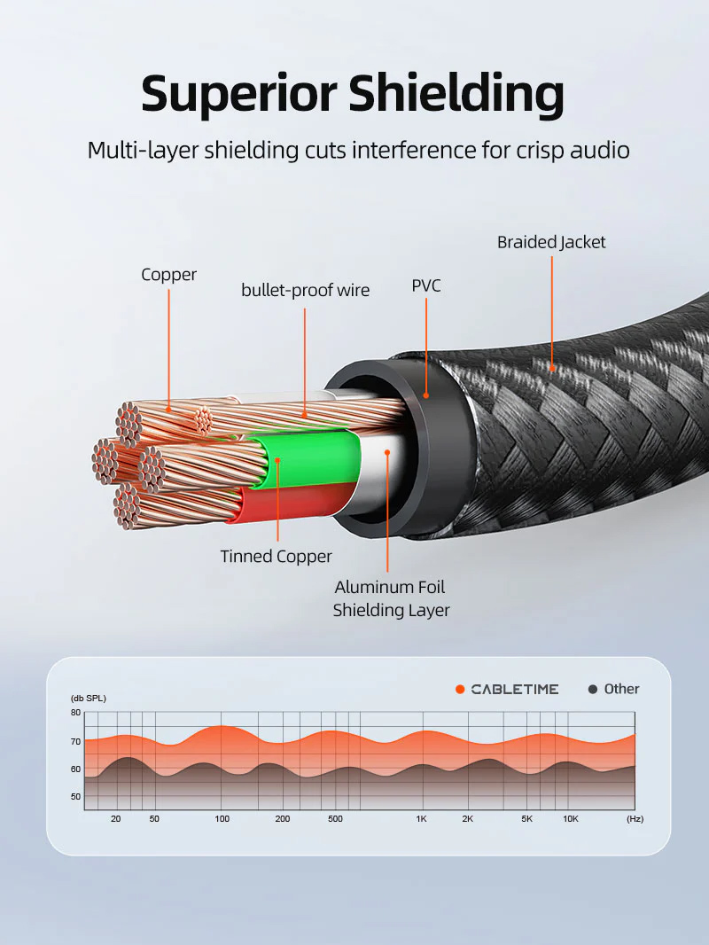 Τα καλώδια της Cabletime διακρίνονται για τον premium χαρακτήρα τους, καθώς ανήκουν στην high-end κατηγορία ποιότητας. Κατασκευάζονται σύμφωνα με τις υψηλότερες τεχνικές προδιαγραφές, προσφέροντας αξιόπιστη λειτουργία και αντοχή στον χρόνο.