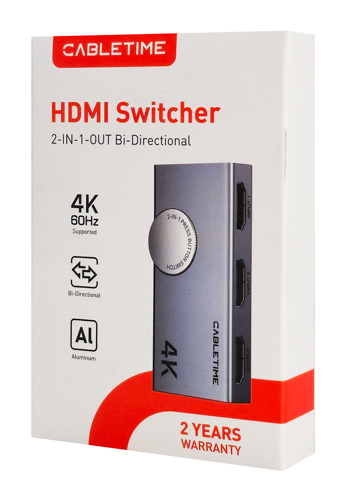 CABLETIME HDMI switch CT-HS4K2-AG, 2 σε 1, 4K/60Hz, bi-directional, γκρι