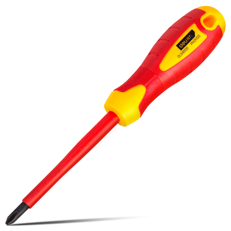 Σταυρωτό κατσαβίδι ηλεκτρολόγου από την Deli με πιστοποίηση VDE για αντοχή σε τάση 1000V. Η μύτη του κατσαβιδιού διαθέτει μαγνητική ιδιότητα ενώ η αντιολισθητική λαβή του προσφέρει άνετο κράτημα κατά την διάρκεια της εργασίας.