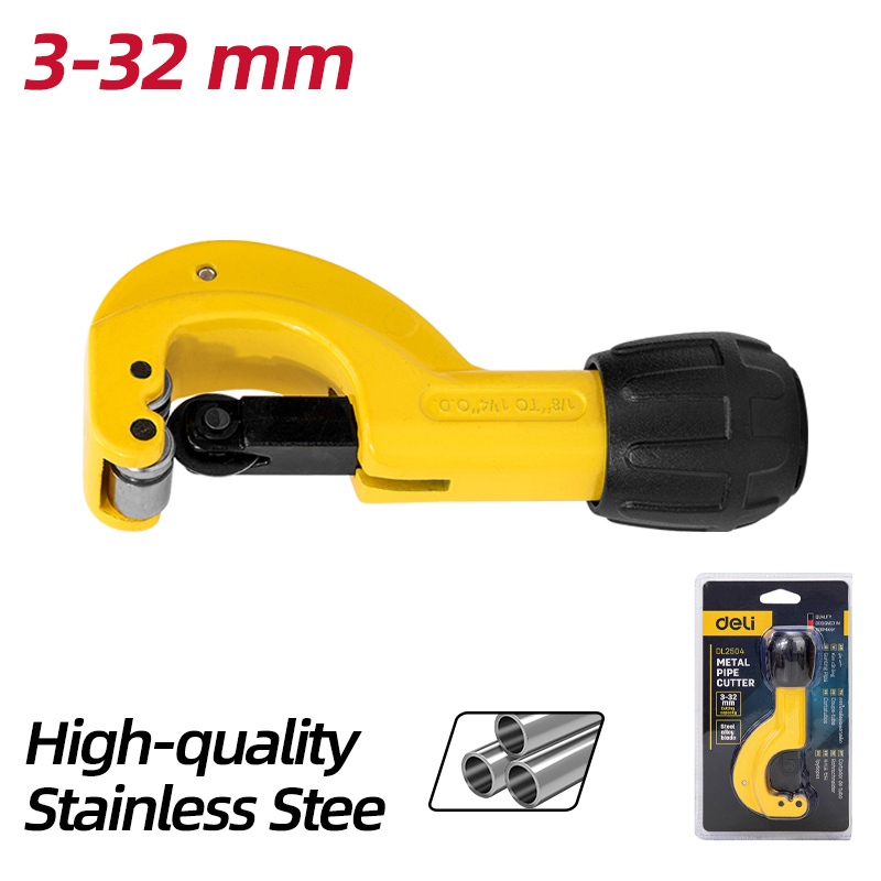 Κόφτης της Deli ιδανικός για γρήγορη και καθαρή κοπή μεταλλικών και πλαστικών σωλήνων με διάμετρο έως 32mm.