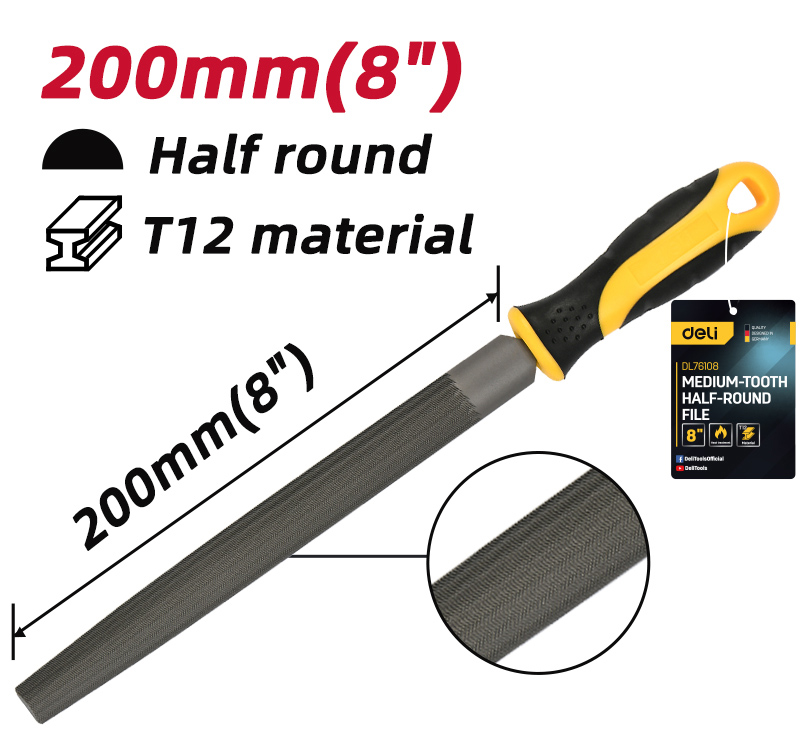 DELI λίμα ημιστρόγγυλη DL76108 με αντιολισθητική λαβή, μετάλλου, 200mm