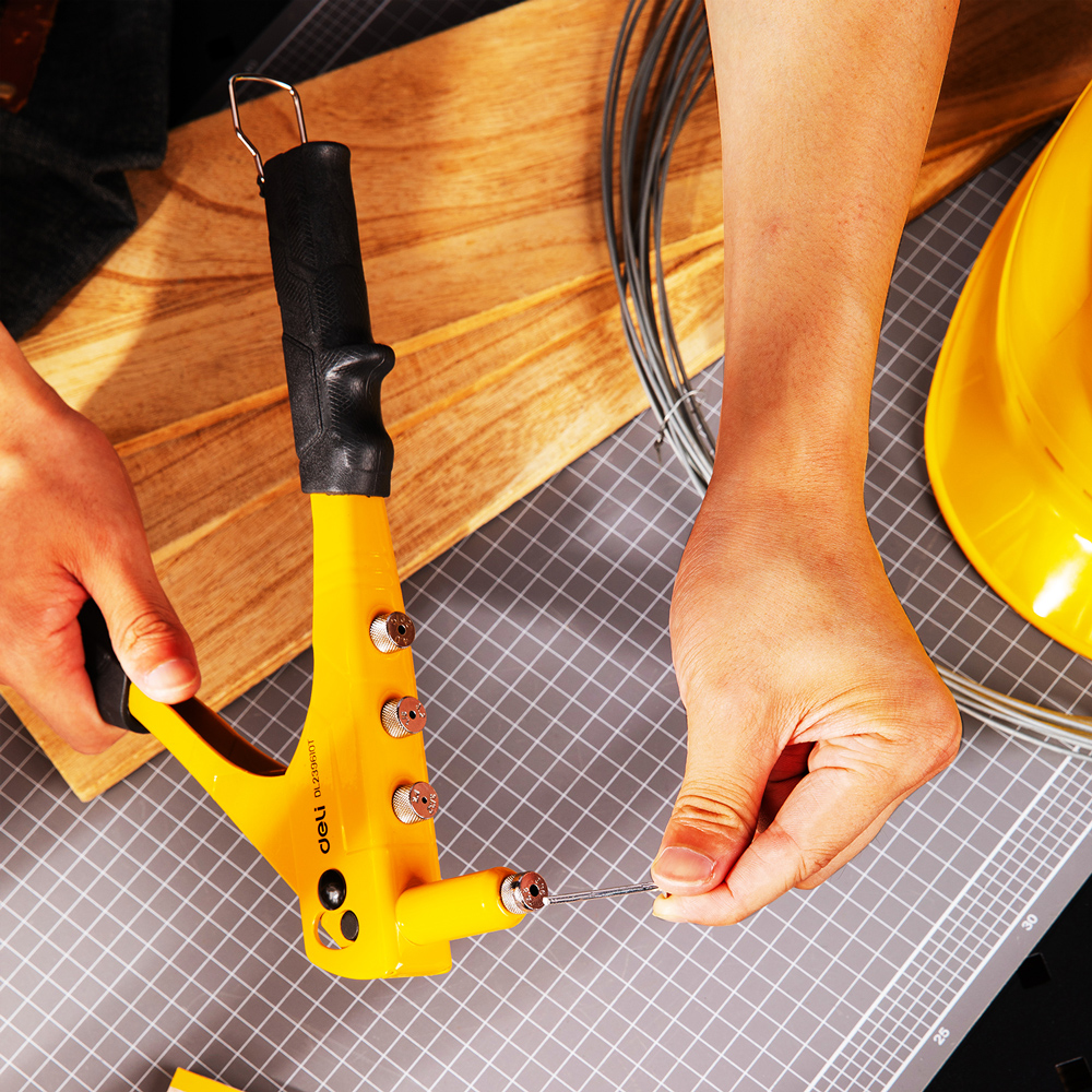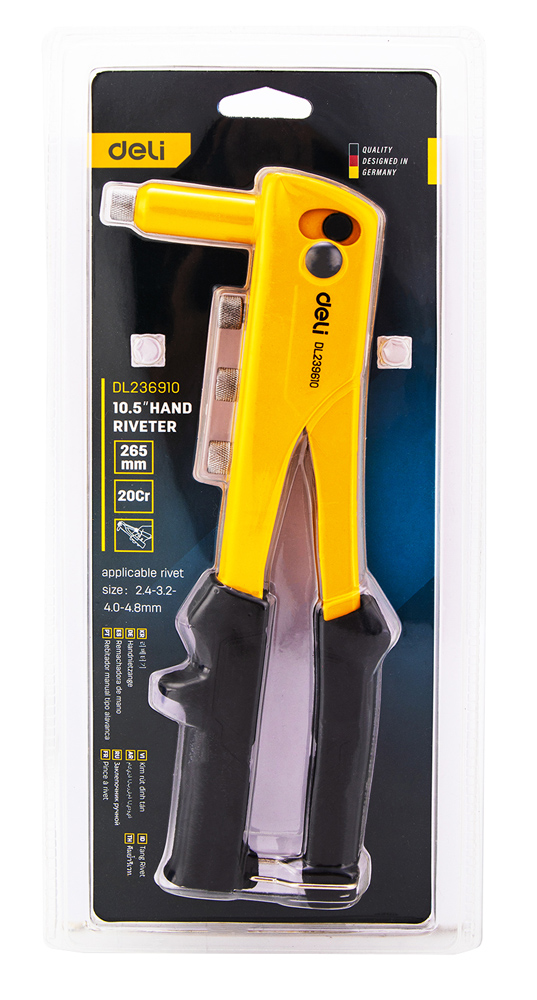 Πριτσιναδόρος χειρός της Deli κατάλληλος για χρήση με πριτσίνια διαμέτρου 2.4mm, 3.2mm, 4mm και 4.8mm.