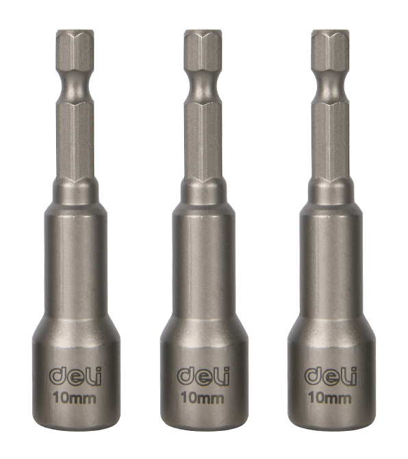 Σετ μαγνητικά καρυδάκια της DELI κατάλληλα για χρήση με δράπανο ή ηλεκτρικό κατσαβίδι. Η συσκευασία περιλαμβάνει 3 καρυδάκια.