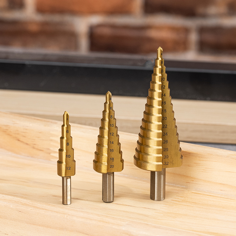 Σετ κωνικά τρυπάνια της DELI κατάλληλα για χρήση σε μεταλλικές επιφάνειες. Είναι κατασκευασμένα από χάλυβα υψηλής ταχύτητας (HSS) και διαθέτουν βαθμίδες διαφορετικής διαμέτρου. Η συσκευασία περιλαμβάνει 3 κωνικά τρυπάνια διαφορετικού μεγέθους.