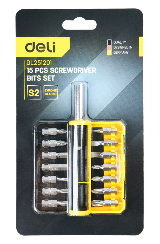 DELI σετ μύτες κατσαβιδιού DL251201 με αντάπτορα, μαγνητικές, 15τμχ
