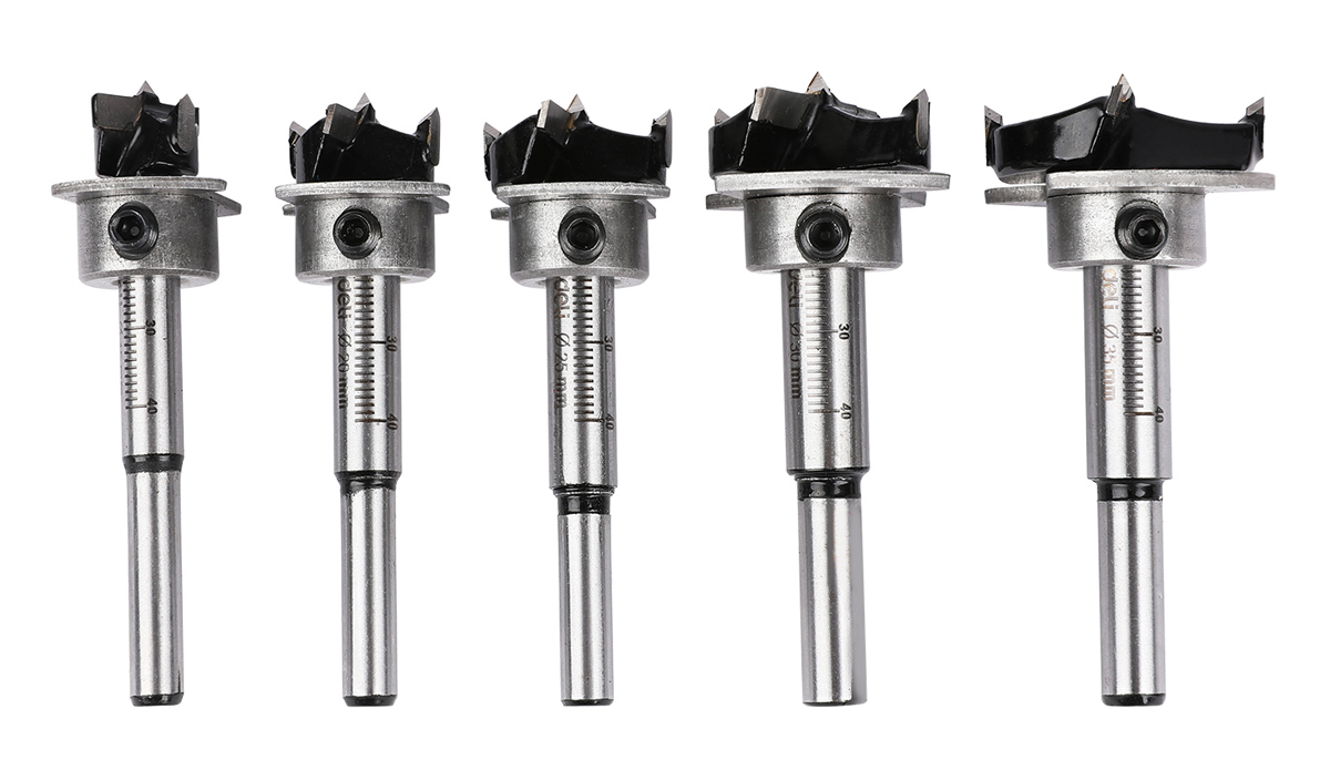 DELI σετ τρυπάνια μεντεσέ DH-MKK005-ED1 για ξύλο/πλαστικό, TCT λεπίδα, 15-35mm, 5τμχ