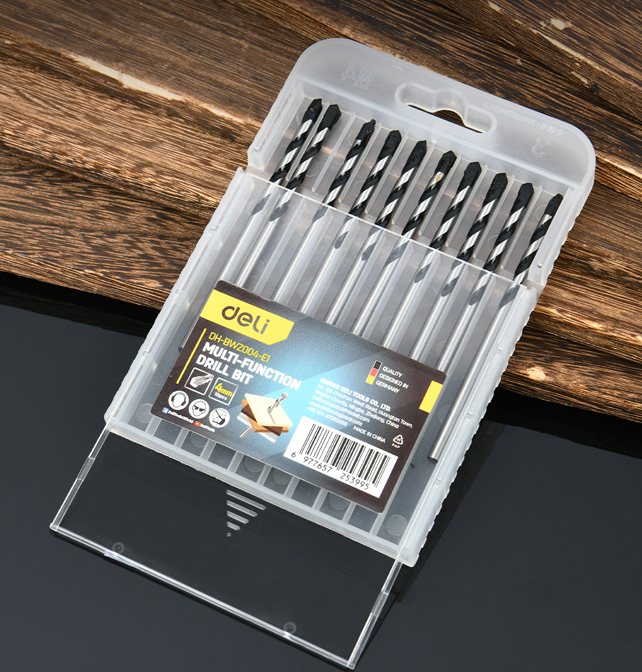Σετ τρυπάνια της Deli κατάλληλα για χρήση σε επιφάνειες από πέτρα, μέταλλο, ξύλο, μάρμαρο κ.α. Η συσκευασία περιλαμβάνει 10 τρυπάνια.