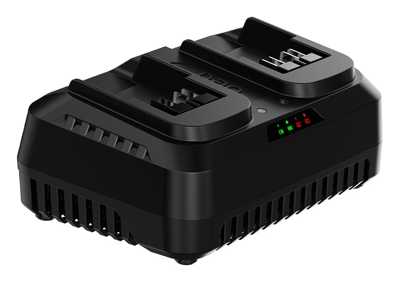 Διαθέτει δύο θέσεις φόρτισης, προσφέροντας ταυτόχρονη φόρτιση δύο μπαταριών, εξοικονομώντας χρόνο και αυξάνοντας την αποδοτικότητα στην εργασία σας.