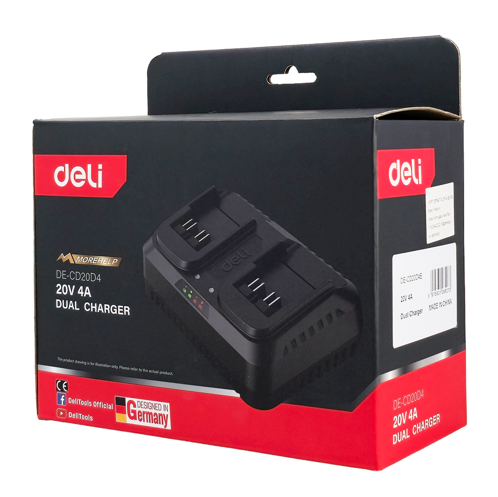 Φορτιστής της Deli ιδανικός για την φόρτιση 20V μπαταριών λιθίου δραπανοκατσάβιδων, σκαπτικών και άλλων εργαλείων μπαταρίας.