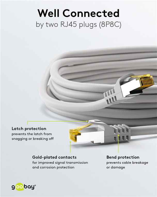 Τα καλώδια δικτύου της Goobay κατασκευάζονται από ποιοτικά υλικά, με τις υψηλότερες τεχνικές προδιαγραφές, προσφέροντας αξιόπιστη λειτουργία υψηλής απόδοσης, με αντοχή στον χρόνο.