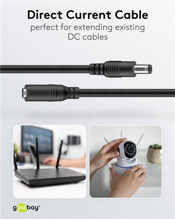 GOOBAY καλώδιο προέκτασης τροφοδοσίας 71400, 5.5×2.1mm, 10m, μαύρο
