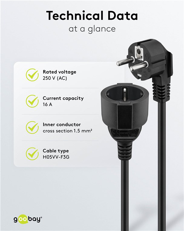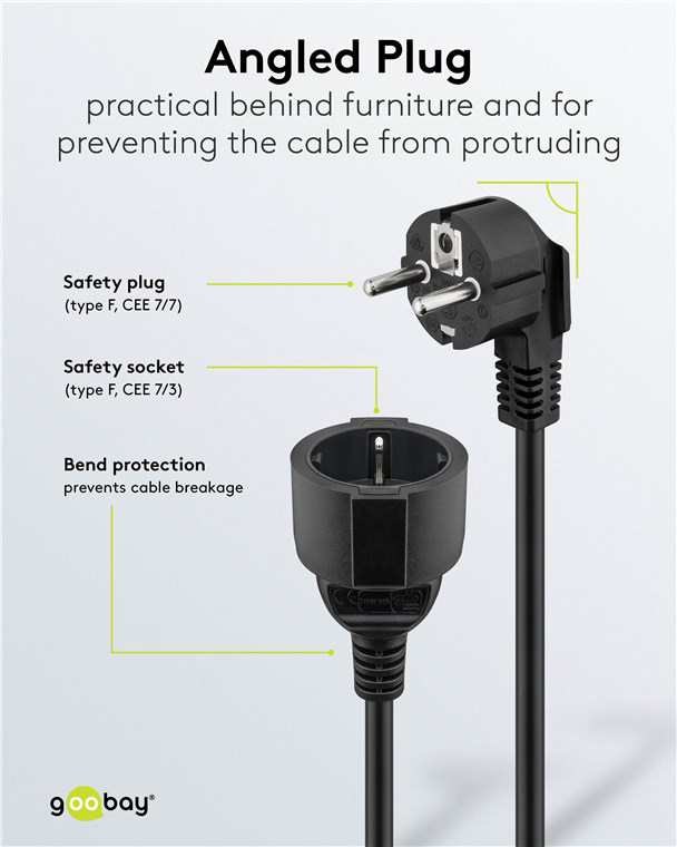GOOBAY μπαλαντέζα προέκταση ρεύματος 94700, schuko, 3x 1.5mm², 2m, μαύρη