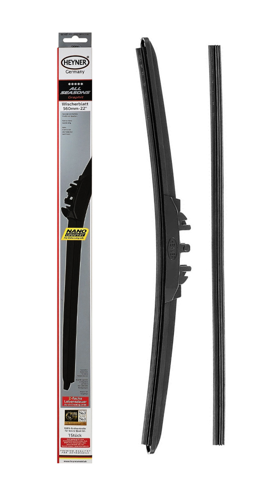 Υαλοκαθαριστήρας αυτοκινήτου της HEYNER με NANO graphite τεχνολογία που προσφέρει ελαστικότητα και αντοχή για μακροχρόνια χρήση.