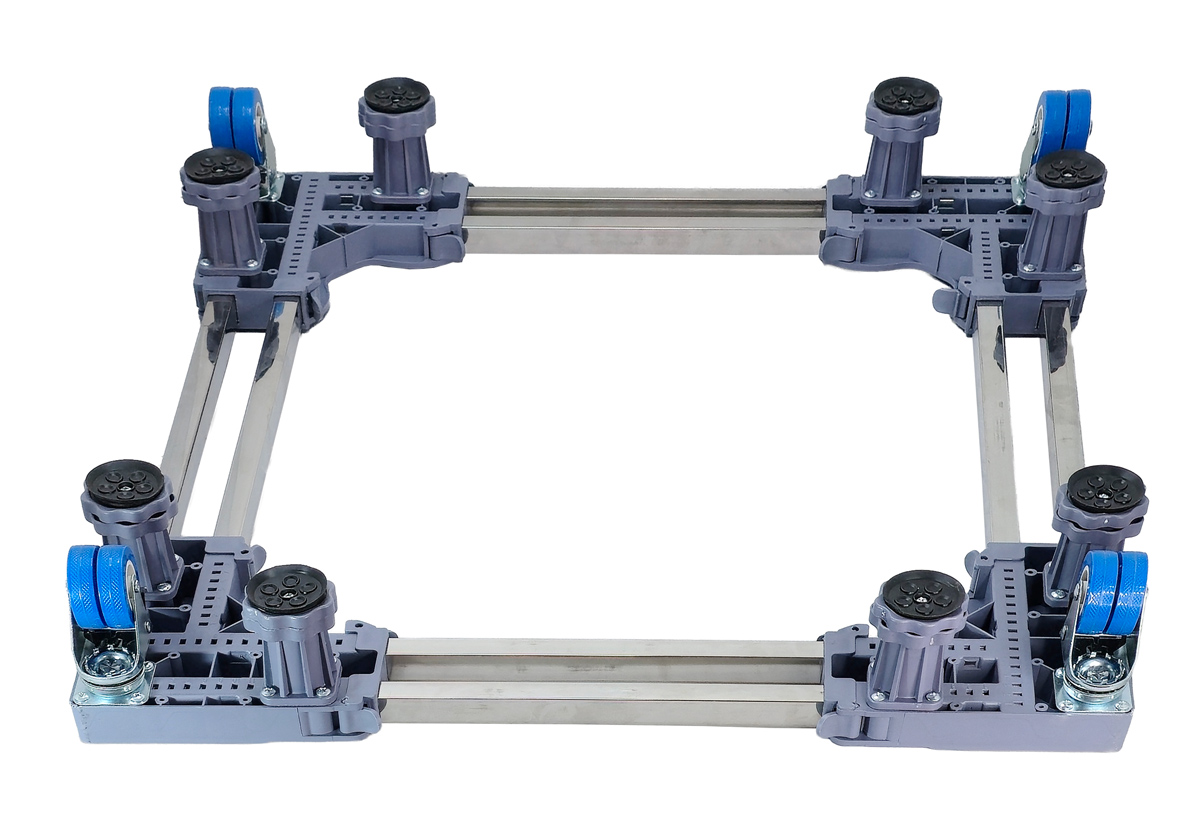 Βάση λευκών συσκευών της HOME USE, κατάλληλη για την τοποθέτηση και μετακίνηση βαρέων αντικειμένων όπως πλυντήριο, ψυγείο, κουζίνα κ.α., με ικανότητα μεταφοράς φορτίου έως 500kg.