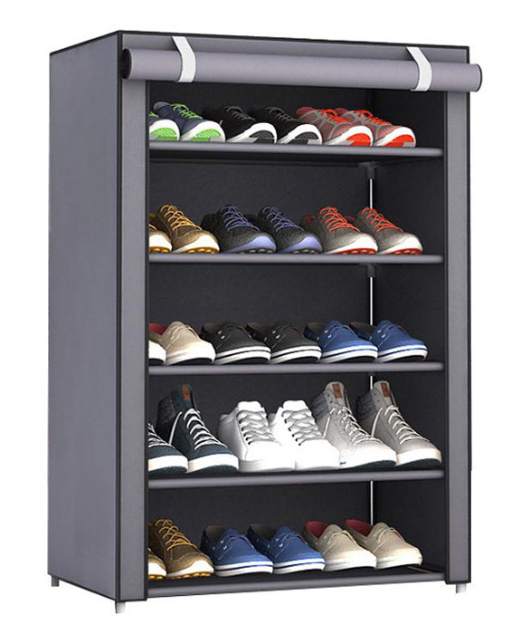 HOME USE υφασμάτινη παπουτσοθήκη HUH-0180 με 5 ράφια, 60x30x90cm, γκρι