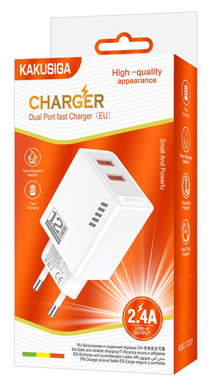 KAKUSIGA φορτιστής τοίχου KSC-1237, 2x USB, 12W, λευκός