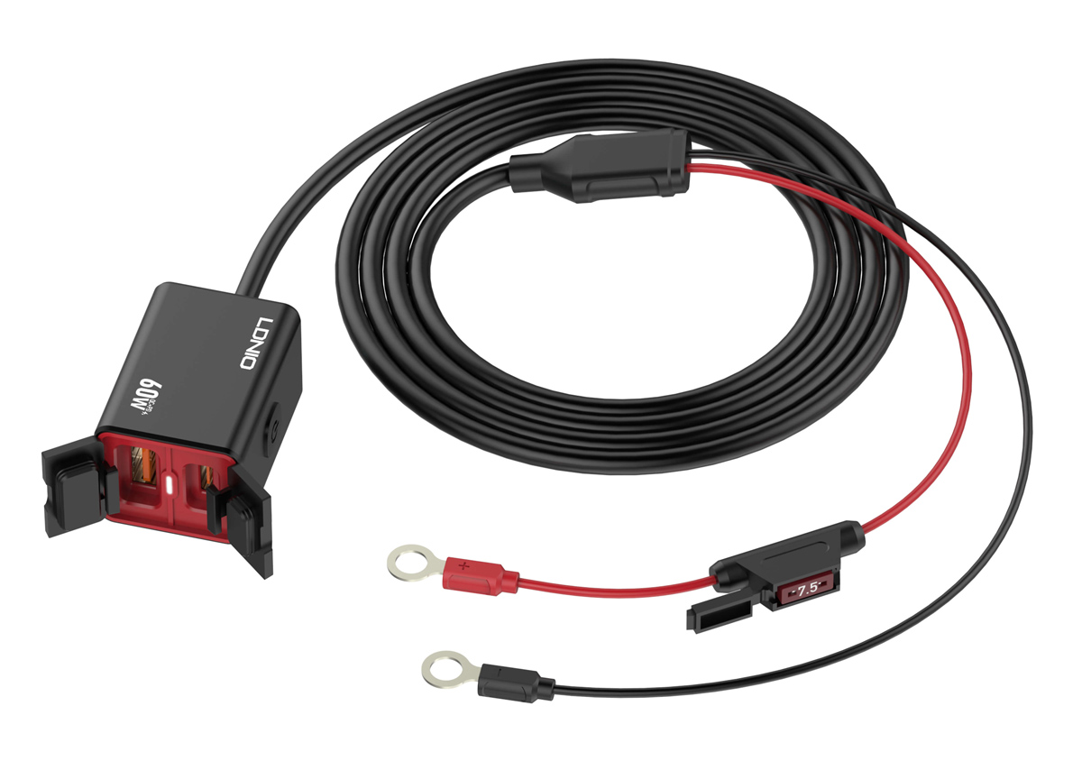 LDNIO φορτιστής μοτοσυκλέτας C108 με καλώδιο, USB/USB-C, 60W, μαύρος