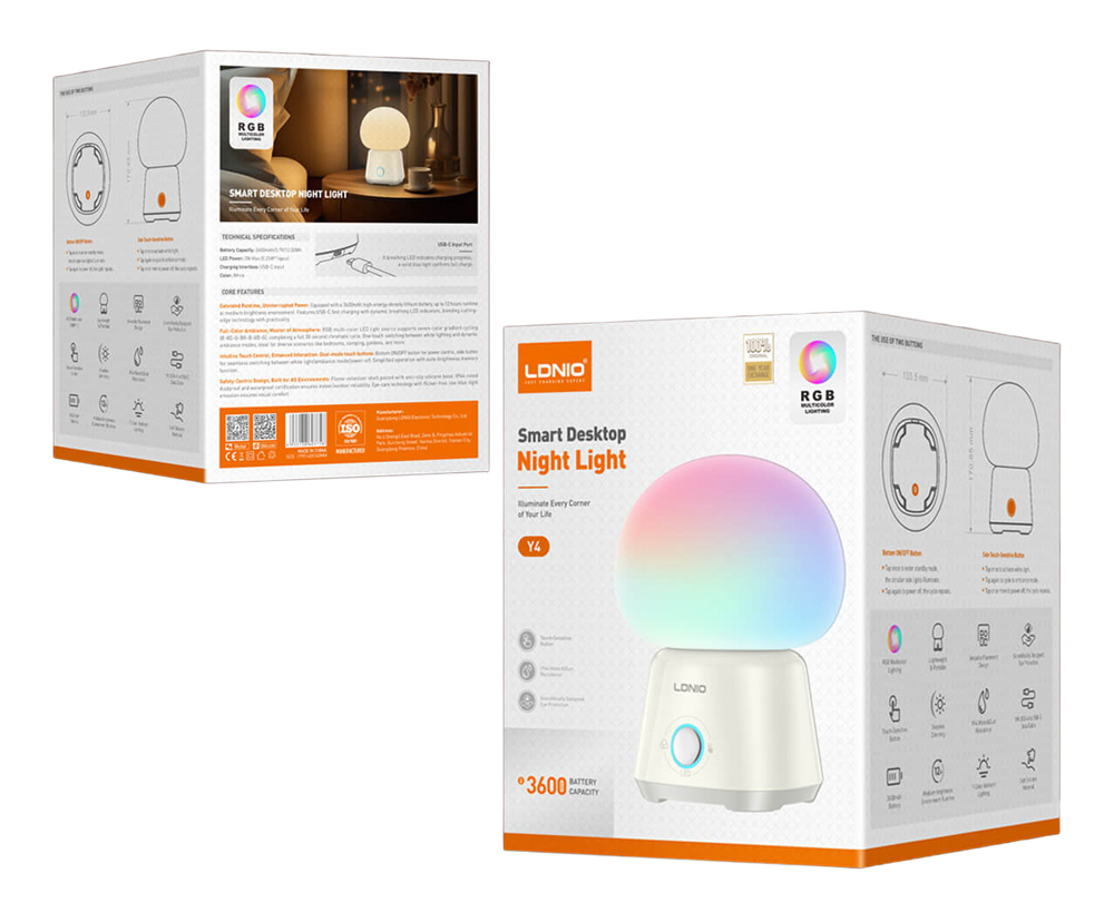 LDNIO LED φωτιστικό νυκτός Y4, RGB, ρυθμιζόμενο, επαναφορτιζόμενο, λευκό