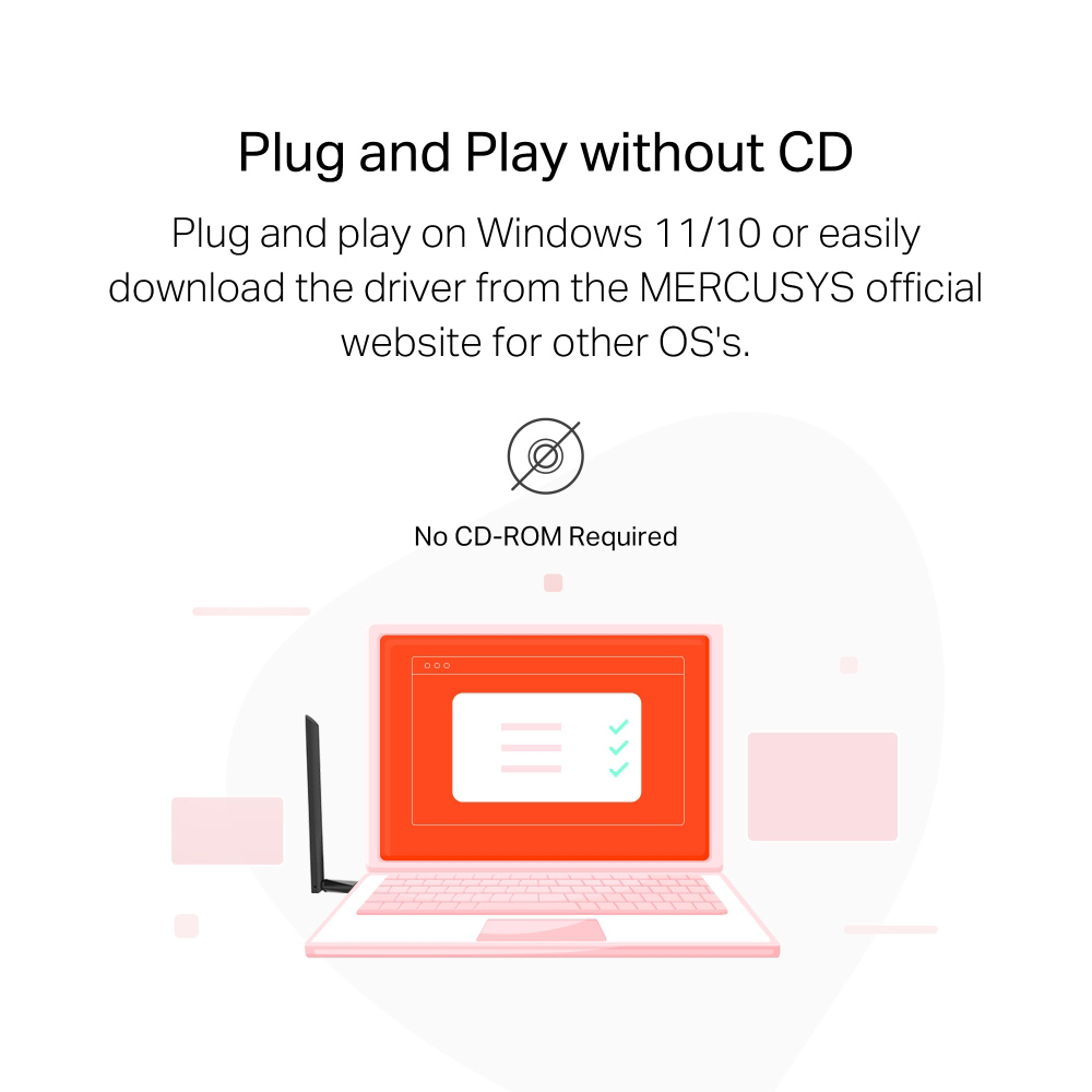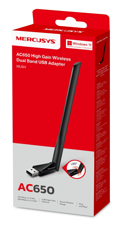 Ο ασύρματος USB αντάπτορας δικτύου MU6H της MERCUSYS σας επιτρέπει να συνδέσετε ένα σταθερό ή φορητό υπολογιστή, σε ασύρματο δίκτυο WiFi, μέσω ελεύθερης θύρας USB.