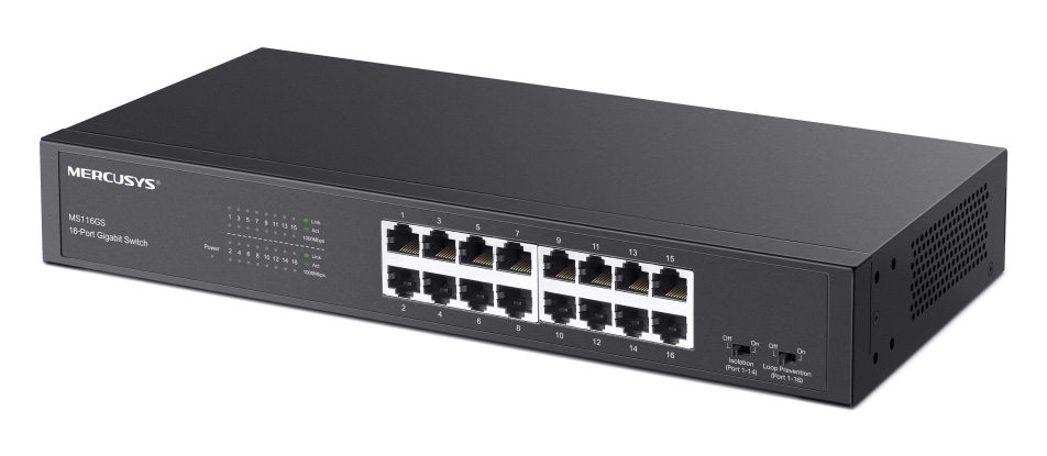 Το desktop/rackmount switch της Mercusys σας επιτρέπει να επεκτείνετε το ενσύρματο δίκτυο σας με 16x Gigabit θύρες.