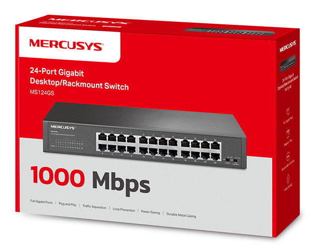 Το desktop/rackmount switch της Mercusys σας επιτρέπει να επεκτείνετε το ενσύρματο δίκτυο σας με 24x Gigabit θύρες.