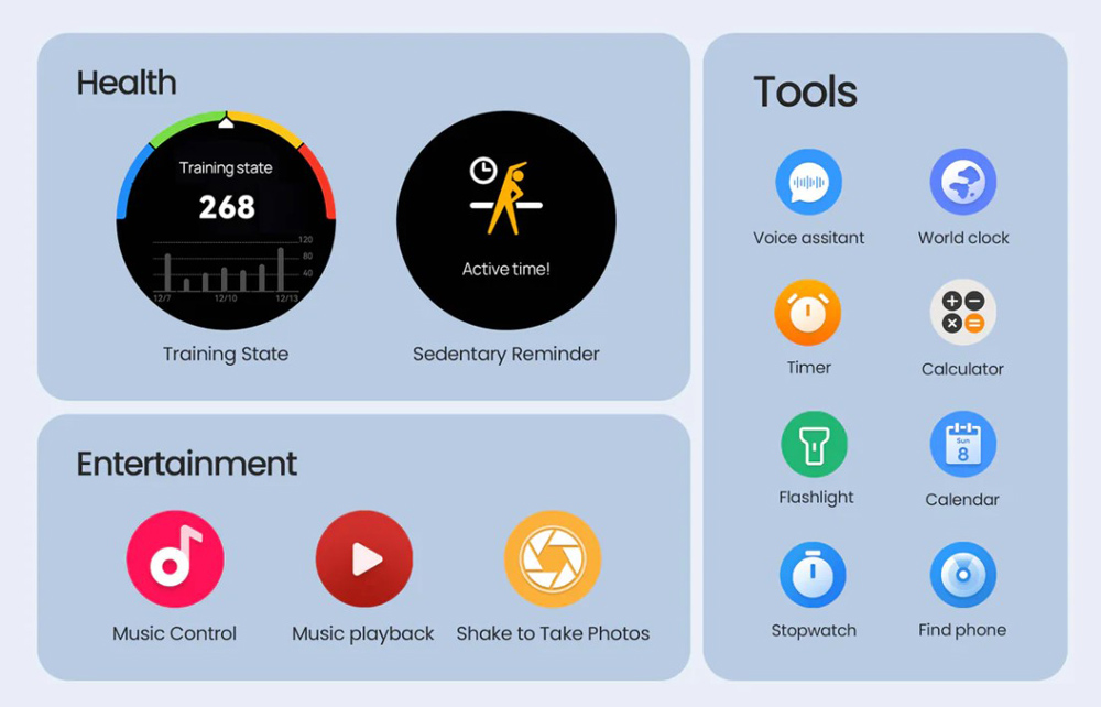 Διαθέτει πληθώρα fitness χαρακτηριστικών και αισθητήρα καρδιακών παλμών. Επιπλέον, υποστηρίζει τηλεφωνικές κλήσεις μέσω Bluetooth, απευθείας από το smartwatch.