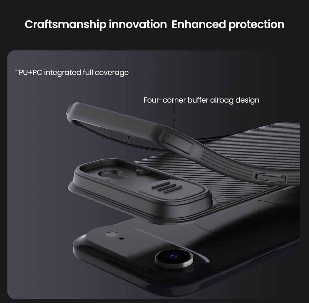 Η θήκη της σειράς CamShield Pro της Nillkin χαρακτηρίζεται από την ενισχυμένη προστασία που προσφέρει, το σκληρό υλικό κατασκευής της με την ανάγλυφη επιφάνεια, αλλά και την έξτρα προστασία των καμερών και της ιδιωτικότητας σας, χάρη στο συρόμενο καπάκι της.