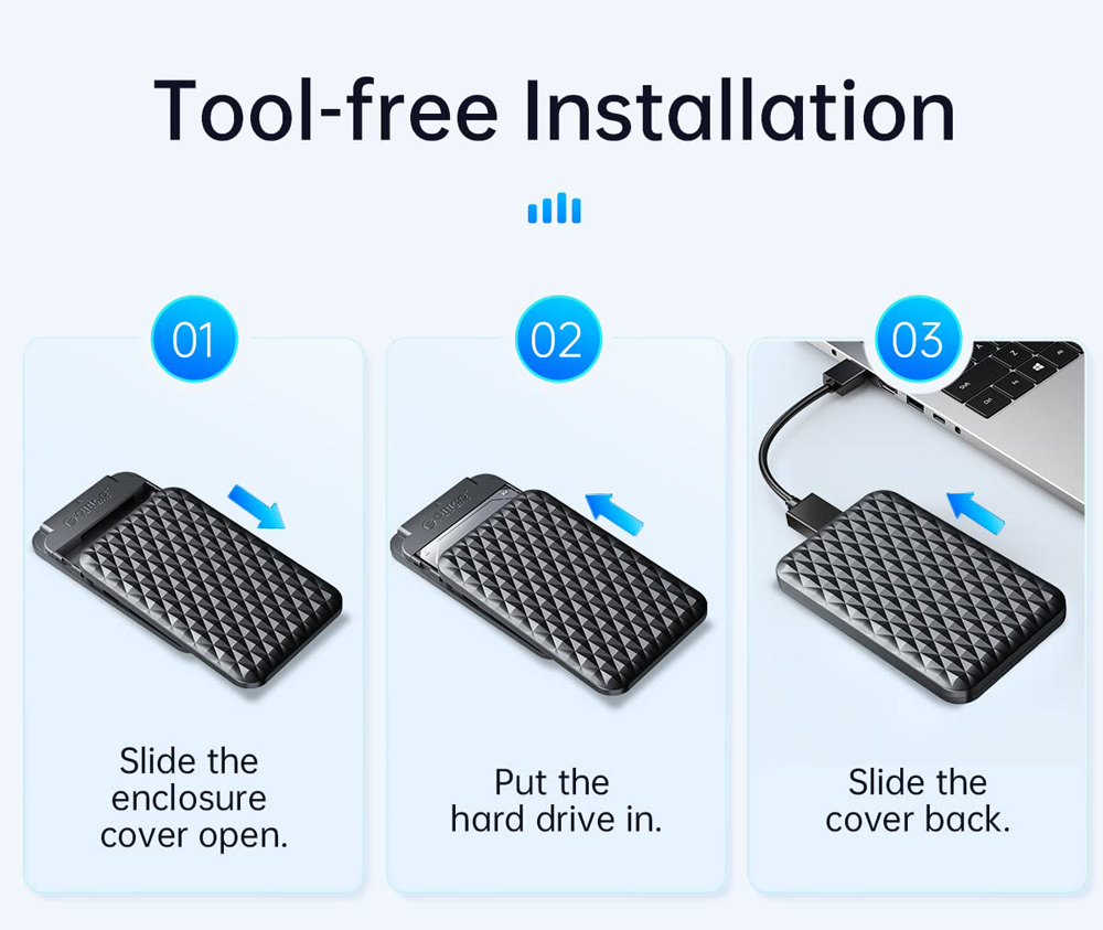 Η θήκη της ORICO επιτρέπει την σύνδεση ενός 2.5″ SATA HDD ή SSD με έναν επιτραπέζιο ή φορητό υπολογιστή μέσω θύρας USB.