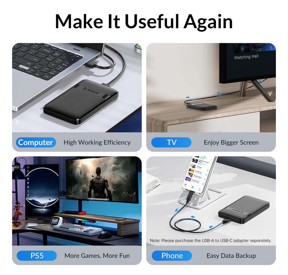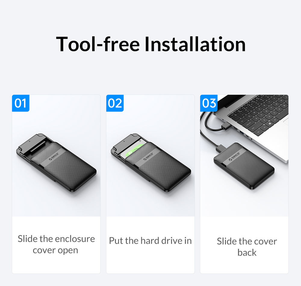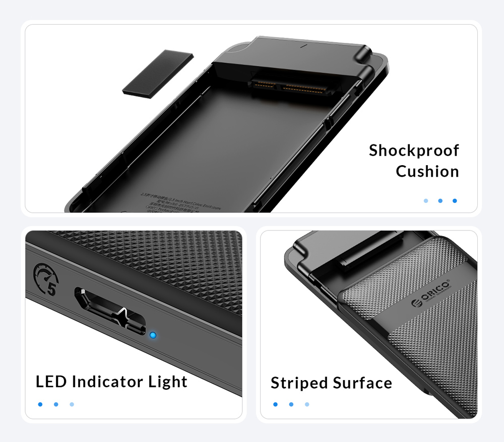 Η θήκη της ORICO επιτρέπει την σύνδεση ενός 2.5″ SATA HDD ή SSD με έναν επιτραπέζιο ή φορητό υπολογιστή μέσω θύρας USB.