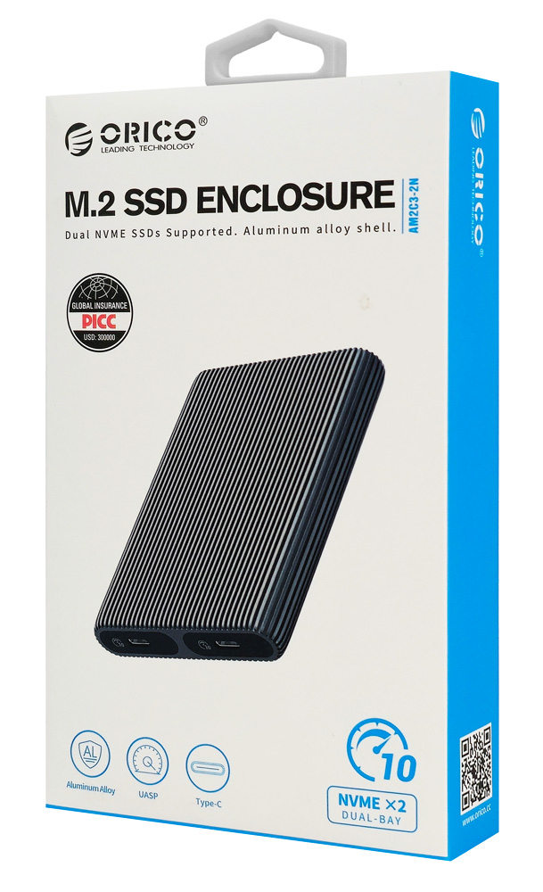 ORICO θήκη για 2x M.2 NVME SSD AM2C3-2N, 10Gbps, tool free, γκρι