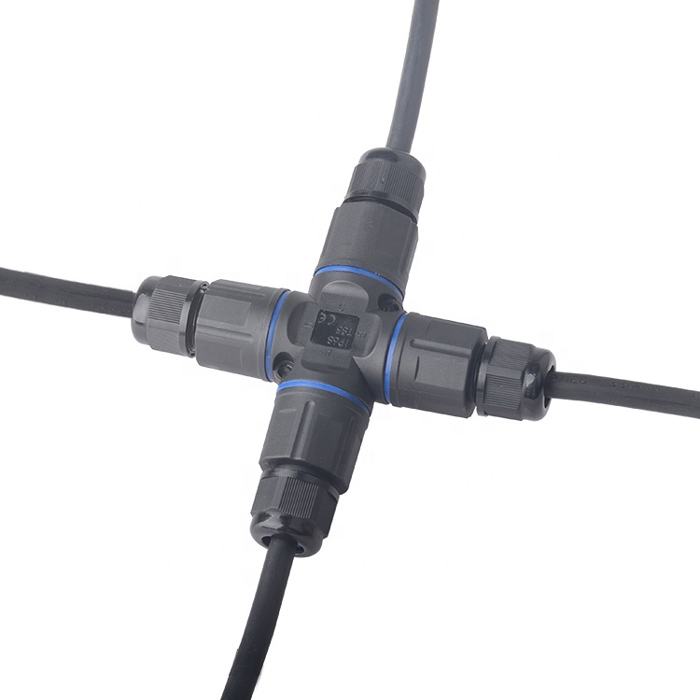 POWERTECH αδιάβροχος σύνδεσμος καλωδίων τροφοδοσίας TOOL-0114, τύπου σταυρός, 3pin, IP68, μαύρος