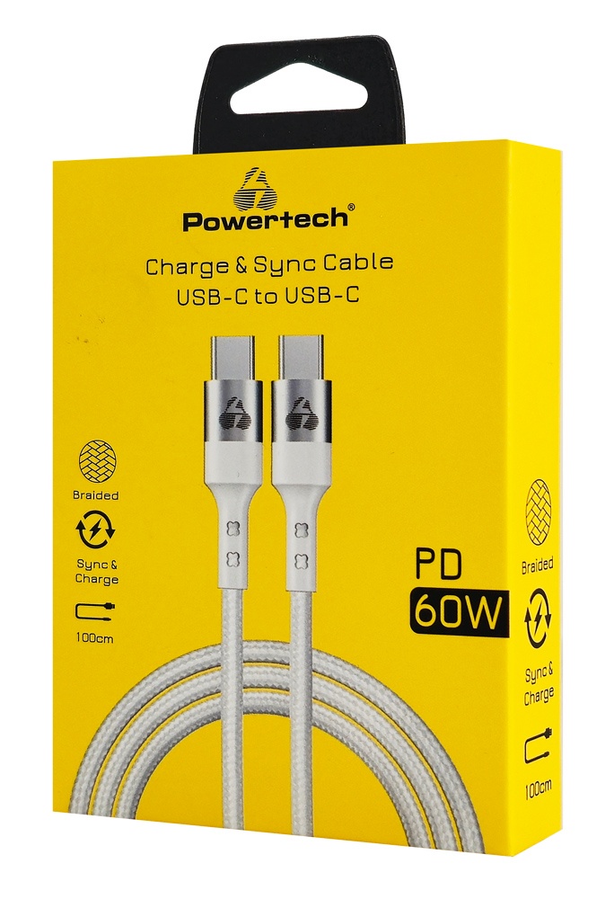 Καλώδιο φόρτισης και μεταφοράς δεδομένων USB-C σε USB-C της Powertech.