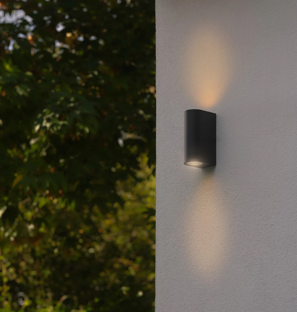 Κομψό και ανθεκτικό φωτιστικό τοίχου εξωτερικού ή εσωτερικού χώρου, σχεδιασμένο για χρήση με λάμπες τύπου GU10.