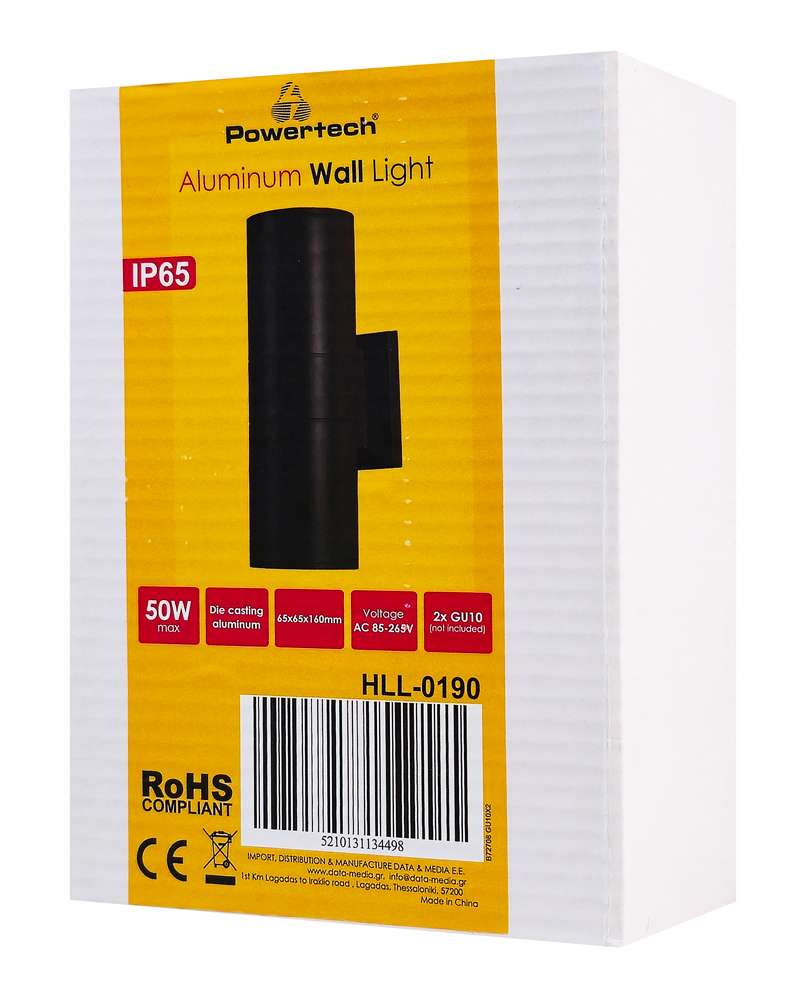 POWERTECH φωτιστικό τοίχου HLL-0190 για 2x GU10 λάμπες, μεταλλικό, IP65, μαύρο