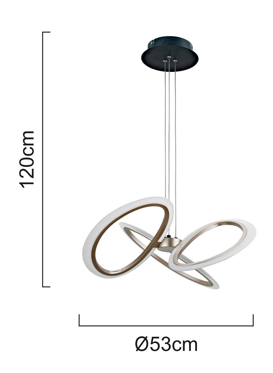 POWERTECH LED φωτιστικό οροφής HLL-0205, 40W, 4000K, Φ53x120cm, οπάλ χρυσό/μαύρο