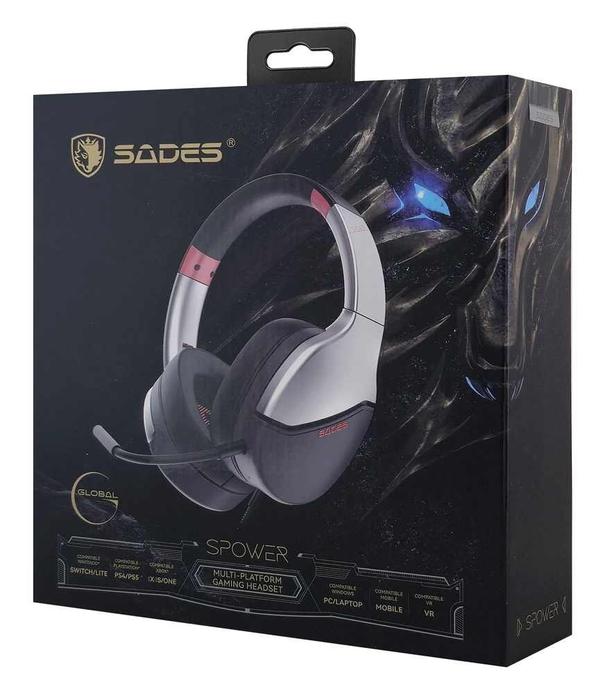 SADES gaming headset SPOWER, 3.5mm σύνδεση, 40mm, multi-platform, ασημί