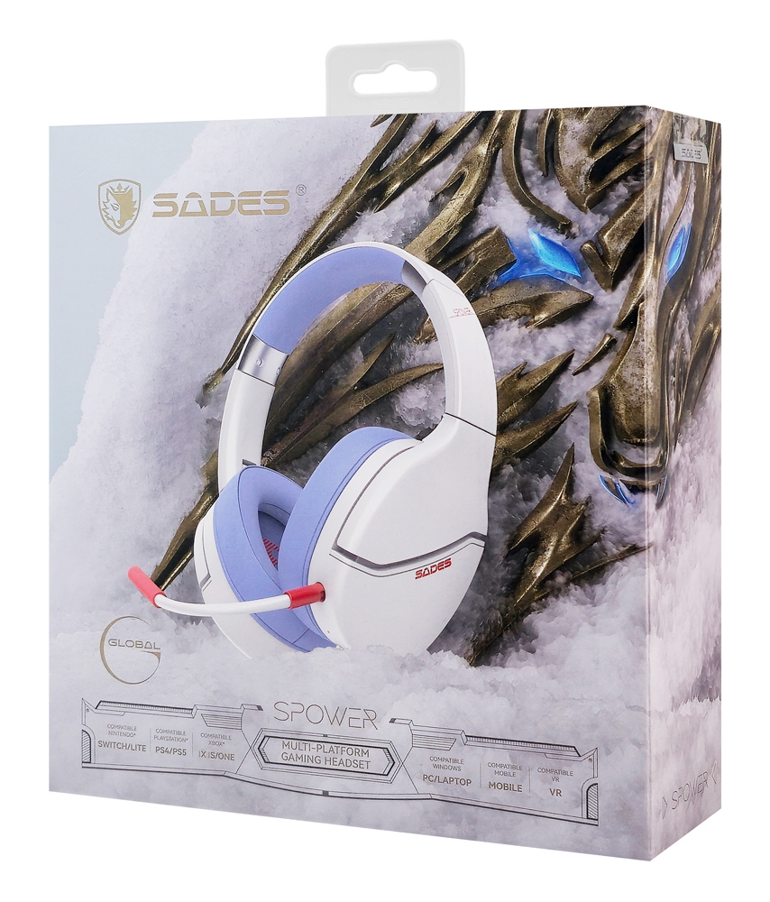 SADES gaming headset SPOWER, 3.5mm σύνδεση, 40mm, multi-platform, λευκό