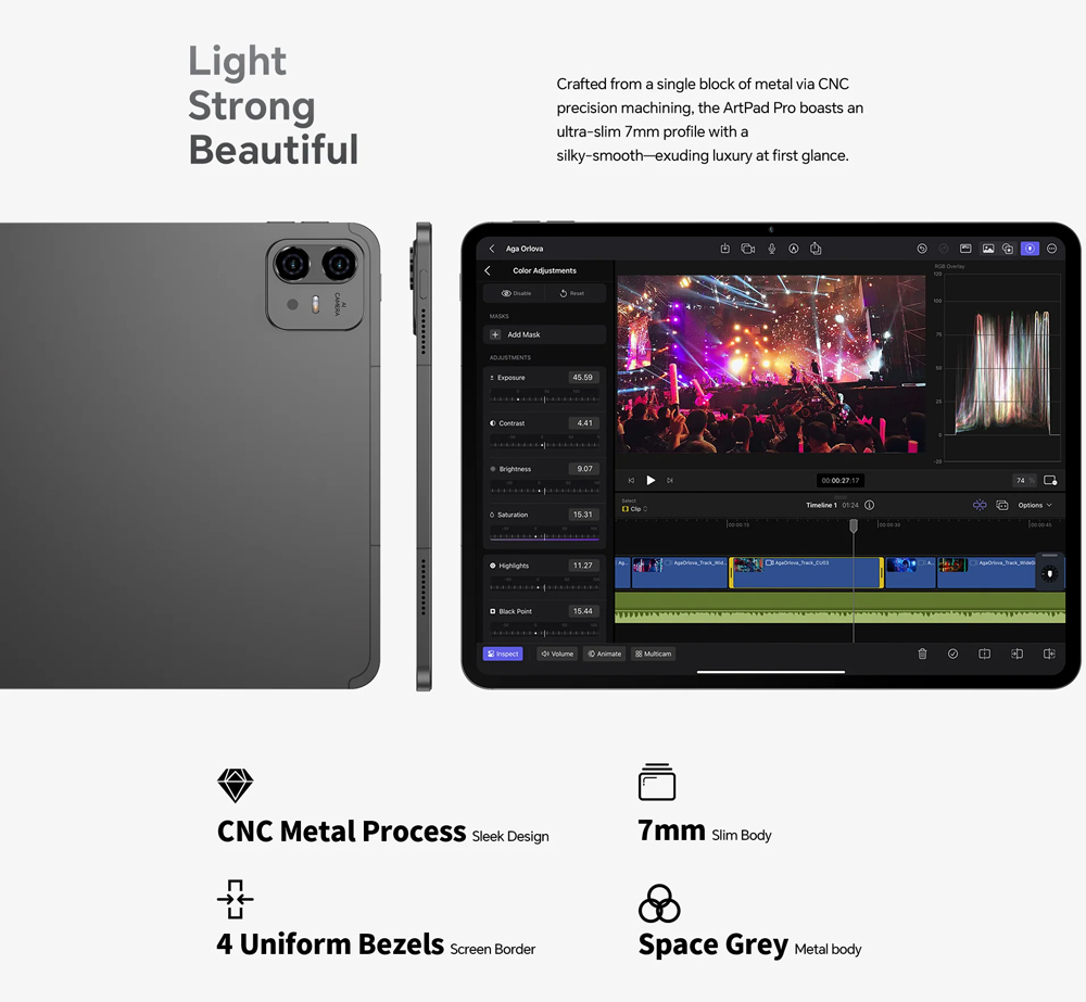 Με ελαφρύ και λεπτό μεταλλικό σώμα, το tablet ArtPad Pro είναι άνετο στη χρήση και εύκολο να μεταφέρεται παντού.