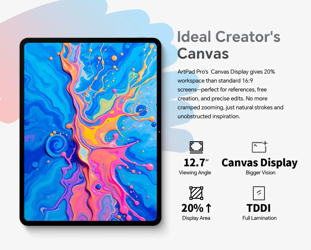 Το tablet ArtPad Pro της Teclast συνδυάζει εντυπωσιακές επιδόσεις και εκλεπτυσμένο σχεδιασμό. Με μεγάλη οθόνη 12.7″, ευέλικτο σύστημα λειτουργικού Android 15 και ισχυρό οκταπύρηνο επεξεργαστή, το ArtPad Pro προσφέρει υψηλή απόδοση, για δημιουργία σχεδίων, απρόσκοπτη περιήγηση στο διαδίκτυο, παιχνίδια, πολυμέσα και πολλά άλλα.