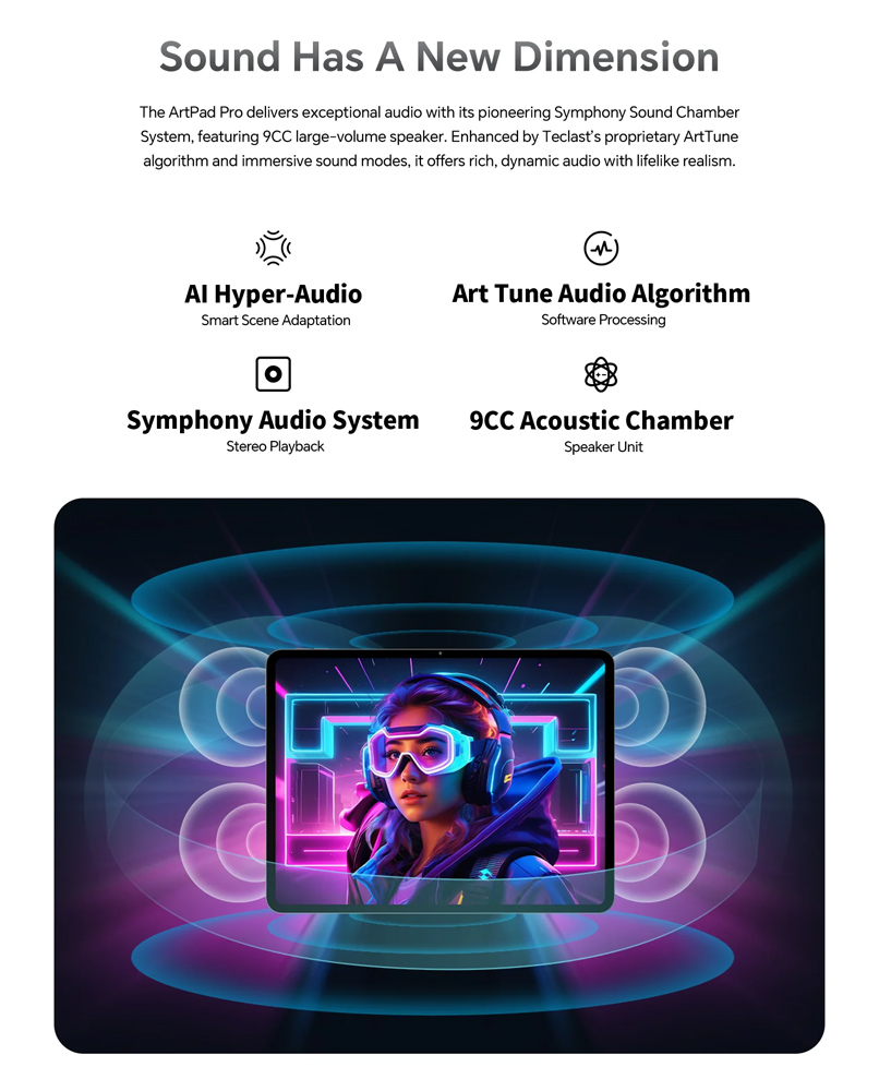 Εξοπλισμένο με επεξεργαστή 8 πυρήνων και λειτουργικό Android 15, το ArtPad Pro προσφέρει υψηλή απόδοση για απρόσκοπτη περιήγηση στο διαδίκτυο, παιχνίδια, πολυμέσα και πολλά άλλα.